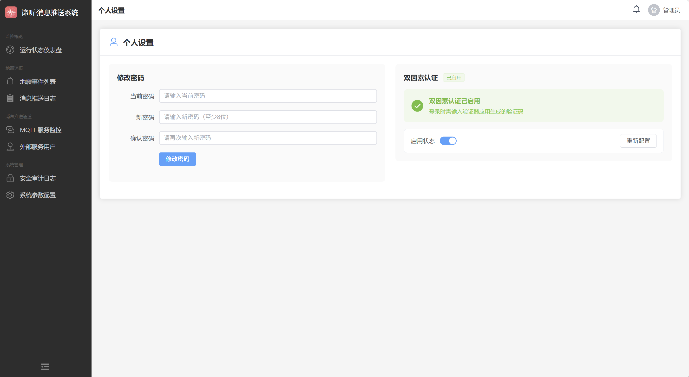 | 统一发布入口 | 提供集中式的消息发布管理界面,支持地震事件、系统状态、告警信息等多种类型消息的统一编排与发布 |