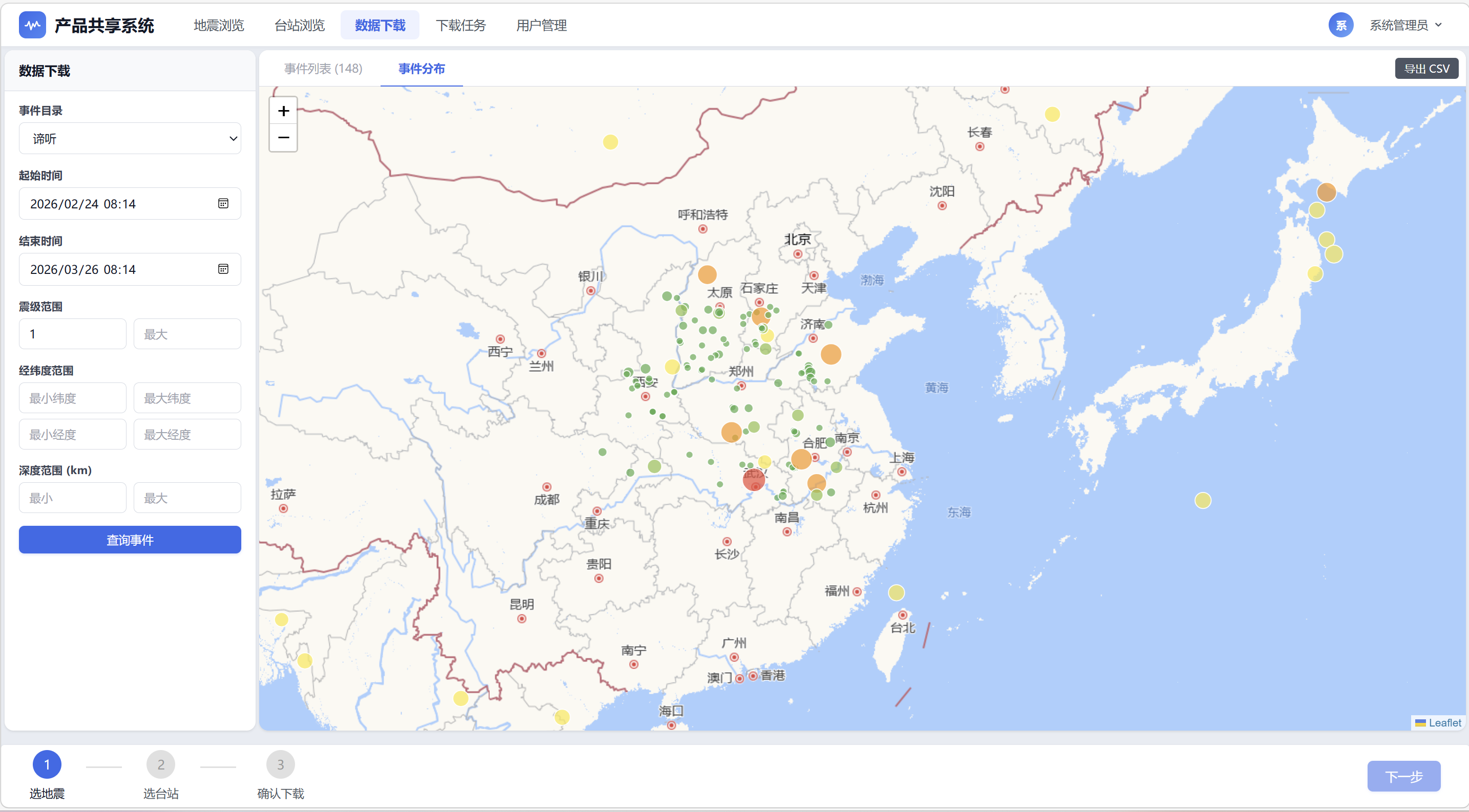 - 地震目录空间分布:具备完善的地震目录管理与可视化功能,可在地图上在线查看地震目录的空间分布