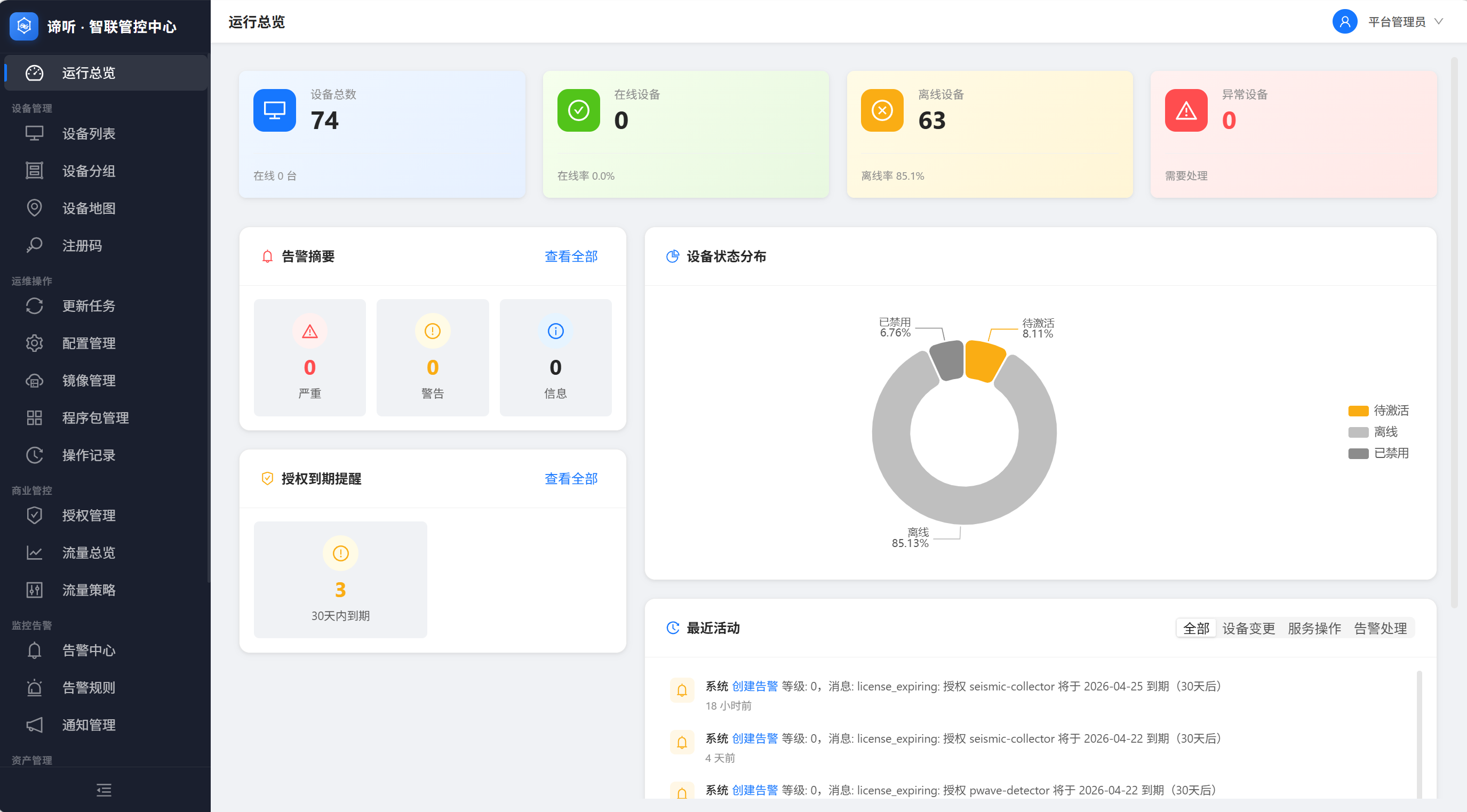 - 全生命周期设备管理:提供设备列表、分组、地理可视化及注册码管理能力